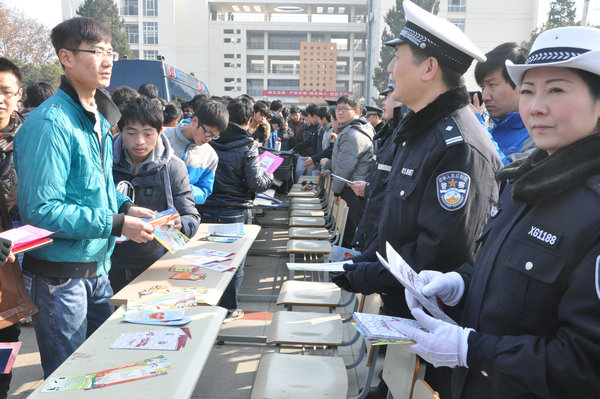 田中良代表学校对淮南市高度重视安徽理工大学师生安全表示感谢,对参加活动的学生在增强安全意识,提高自我防护能力方面提出了要求。王正光就110接处警工作宗旨、110报警服务台受理报警范围等常识向师生作了讲解。