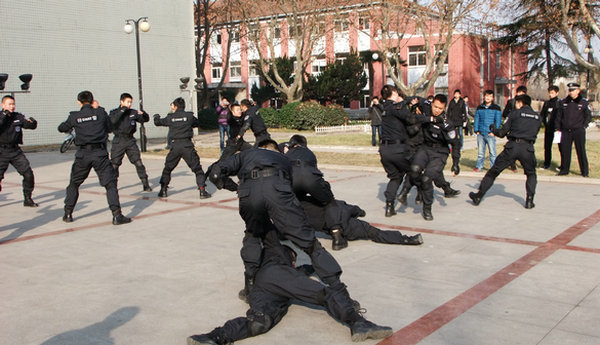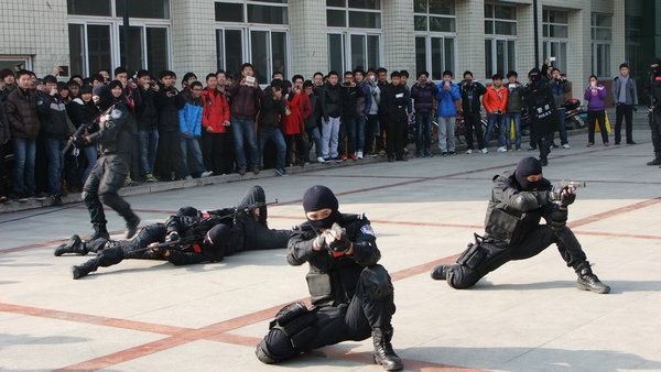 为丰富“110宣传日进校园”活动内容,市公安局特警支队现场表演了擒敌拳、枪操;市公安消防支队对常用消防器材的使用现场示范讲解;对现代化警用装备和消防救援器材进行了展示。为增强警民互动环节,现场设立了多种宣传服务台,学生就安全方面疑问和民警进行了面对面交流。活动现场还向参加的师生发放了有关消防、交通、防抢、防盗、防诈骗等方面的宣传手册。