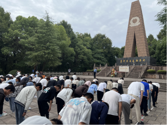 24日,实践团队一行来到芜湖市革命烈士陵园,这里存放着芜湖市各个历史时期涌现出的85名革命烈士的骨灰。在庄严、肃穆的气氛中,师生们怀着崇敬的心情向革命烈士敬献了鲜花,在革命烈士纪念碑前鞠躬致敬,缅怀他们为人民立下的不朽功勋。