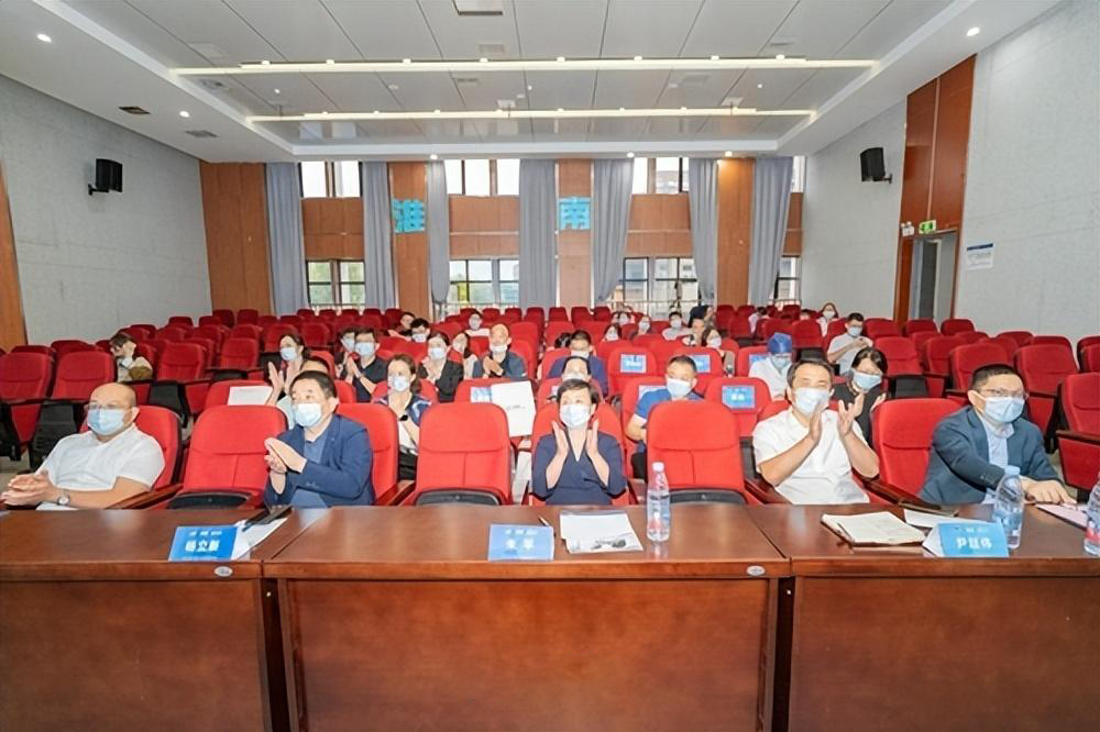 随后,淮南市人大常委会副主任朱平,安徽理工大学第一附属医院党委书记杨立新,淮南市卫健委副主任尹廷伟,安徽理工大学第一附属医院副院长谢应海,合肥登特菲医疗设备有限公司副董事长、总经理黄开先,安徽健康网、合肥论坛《医者》总编吕进共同为本次战略合作基地揭牌。