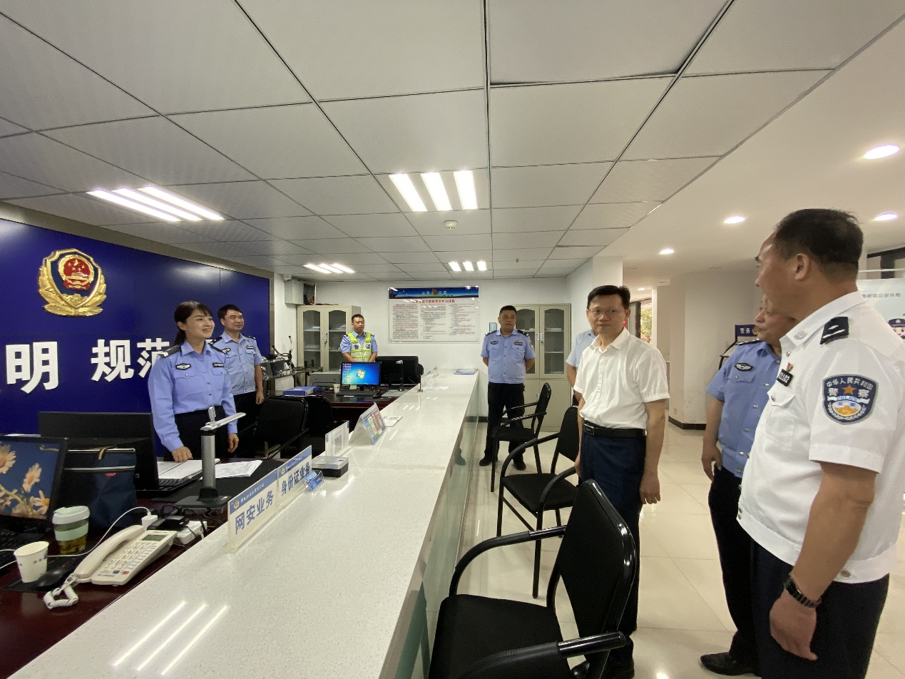文见宝实地察看了校园安保总值班室、校园综合警务站、校园微型消防站、学生宿舍等区域,并对我校安全保卫工作取得的成绩与实效给予了充分肯定。