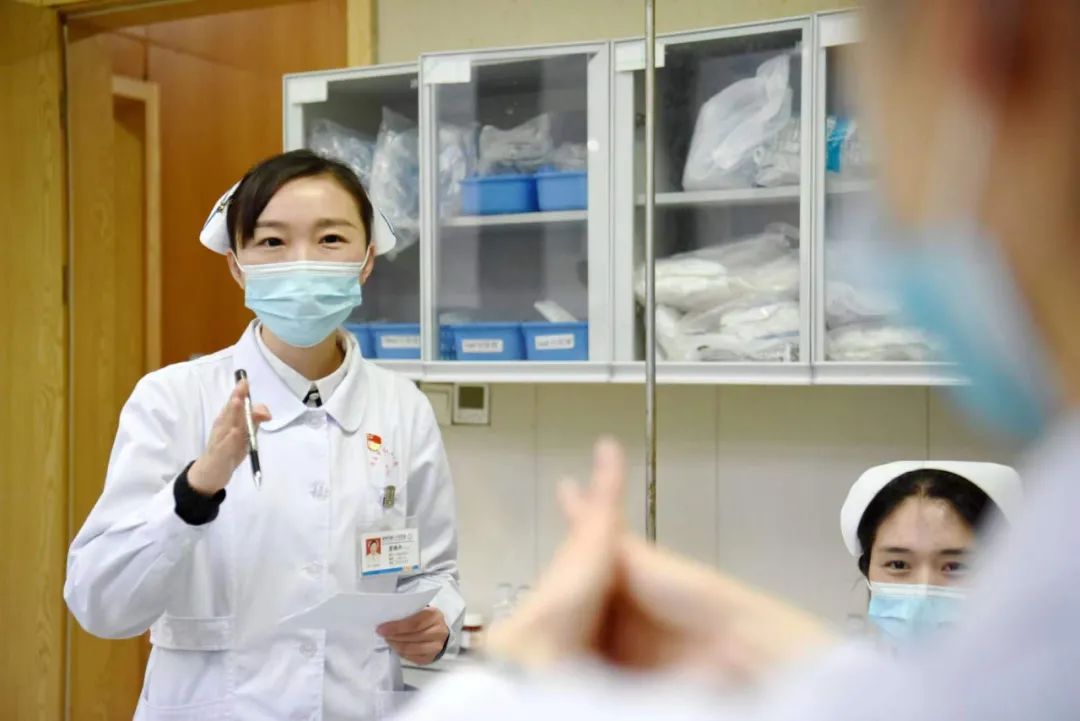 医者仁心,她是白衣天使的化身。2月13日凌晨1点,她带队正式进驻武汉体育中心方舱医院,进舱后又被任命为淮南队护理组组长,带领13名护理人员承担145名新冠肺炎患者的护理任务。凌晨2点,巡视病房时,她发现一位患者血氧饱和度迅速下降,第一时间通知值班医生、及时测量生命体征、按医嘱给药、安抚患者情绪,准确记录抢救过程并及时联系指挥部,在并不熟悉的环境下她做到了各个环节的紧密衔接。当患者生命体征趋于平稳时,已是凌晨3点,她悬着的心才放下。