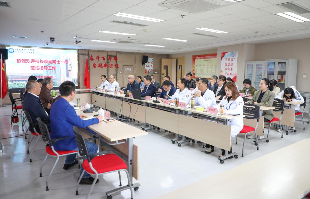 10月9日上午,校党委副书记、校长袁亮院士到第一附属医院调研指导工作,校党委常委、副校长鲁超,校党委常委、党政办公室主任王先江陪同调研。