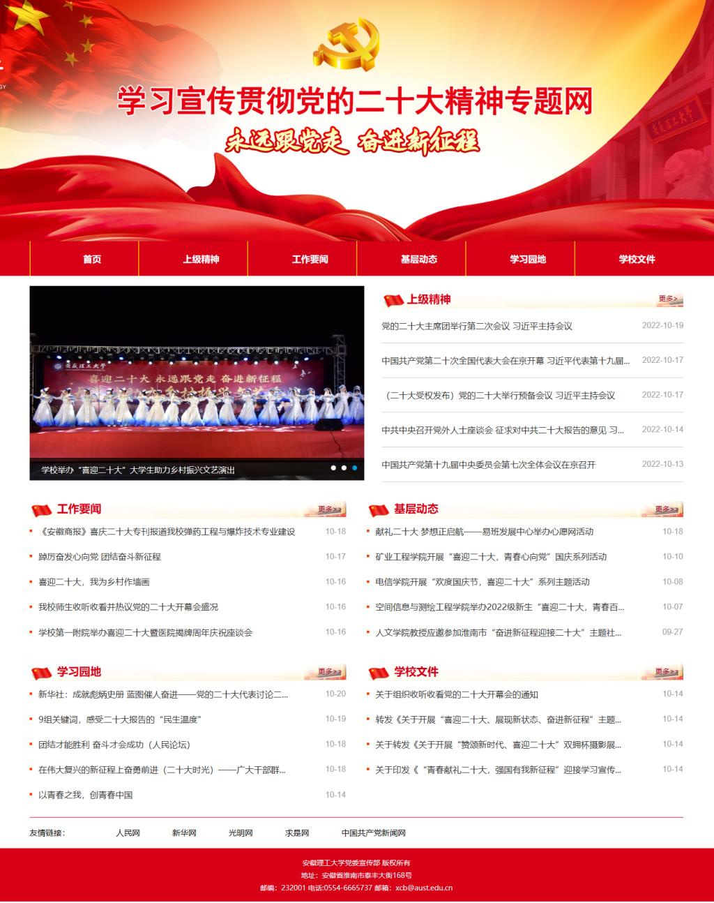日前,安徽理工大学学习宣传贯彻党的二十大精神专题网站正式上线。