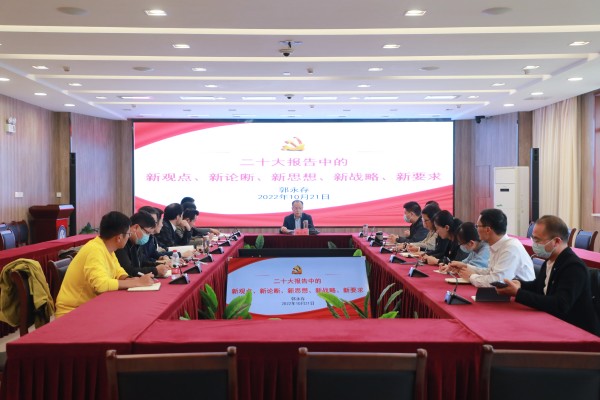 郭永存带领大家认真学习了习近平总书记在党的二十大开幕会上所作的报告,围绕大会主题、三个务必、三件大事、两个“行”、中心任务、中国式现代化、全过程人民民主、为民造福、五个必由之路等17个关键词,用详实的数据、丰富的案例,深入浅出地阐释了二十大报告中的新观点、新论断、新思想、新战略和新要求。