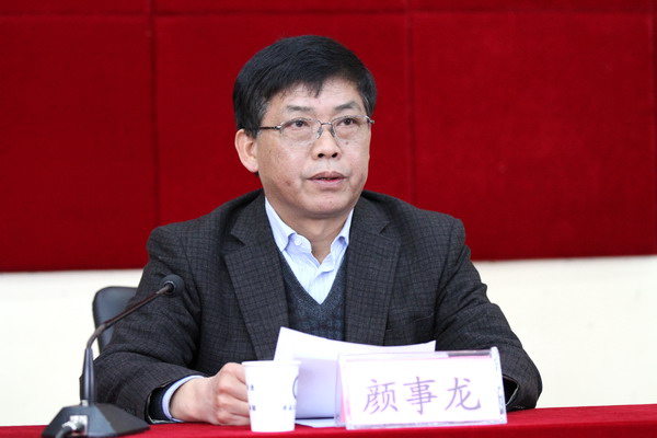 校教育实践活动领导小组组长、校党委书记颜事龙作总结报告