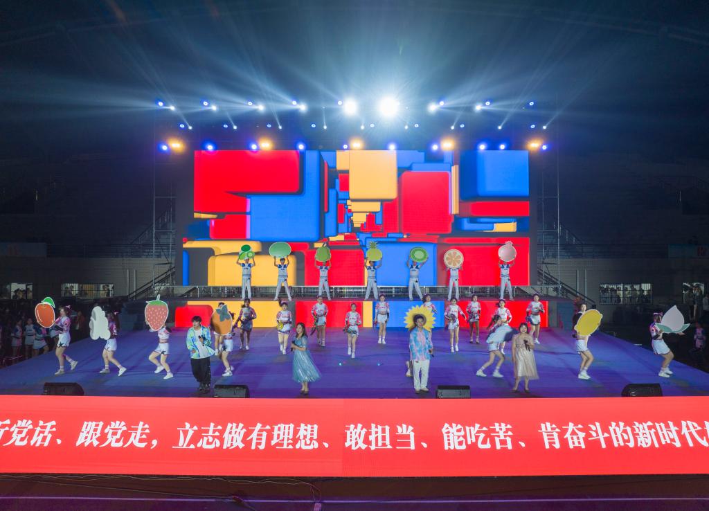 为深入学习宣传贯彻党的二十大精神,展现我校师生听党话、感党恩、跟党走的精神风貌,11月10日晚,学校“学习二十大 永远跟党走 奋进新征程”2022迎新美育晚会在至诚体育场隆重举行。校党委书记郭永存,副校长孟祥瑞,党委常委、副校长宫能平、鲁超出席晚会。各学院(部)领导班子成员,机关职能部门、直属单位负责人,2022级学生辅导员,2022级本科生、研究生、博士生等万余名师生汇集现场共同观看了晚会。