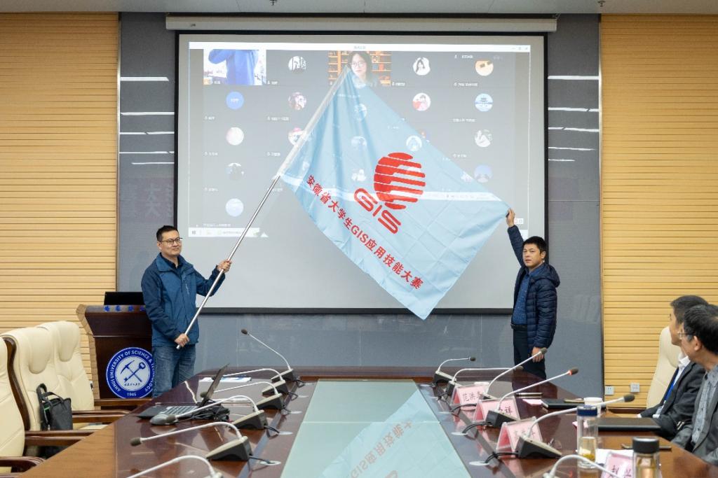 安徽省大学生GIS应用技能大赛赛旗交接仪式(摄影:工作人员)