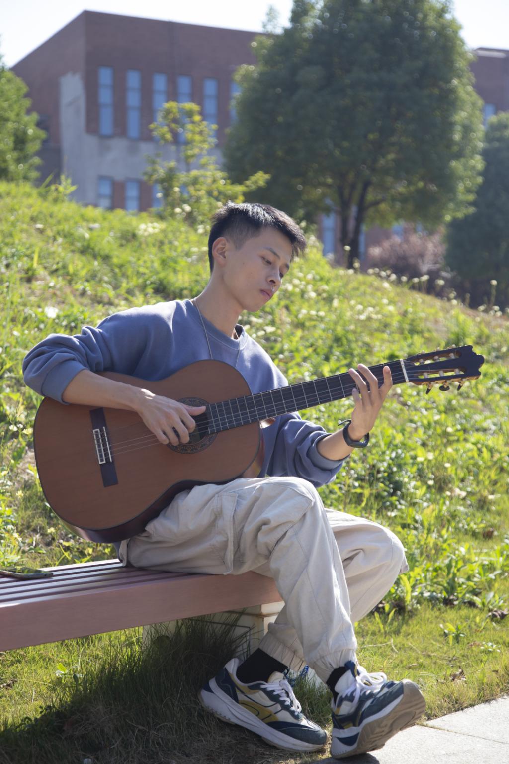 在学习和科研之余,徐毅豪还是一位古典吉他手,练习时间达9年之久。谈及与古典吉他的初遇,徐毅豪说是“一见钟情”。“小时候接触到吉他,还不懂吉他的分别,但我能感受到那种古典吉他的音色就是我想追求的”。在安理的几年,徐毅豪参加了院新生才艺大赛、元旦感恩晚会等各项活动。徐毅豪喜欢打磨音乐的美感。练习的过程就是磨合心性的过程,在反复的弹奏过程中往往能更深刻理解曲子所表达的情感。徐毅豪说:“一次好的演绎,不在于技巧多么高超,而在于琴声是否充满感情,能否打动人。”徐毅豪对笔者说,“做实验遇到困难时,我就会弹吉他,艺术与科学的美感是相通的,历史上多少科学家同时也是艺术家,那种境界令人神往。”