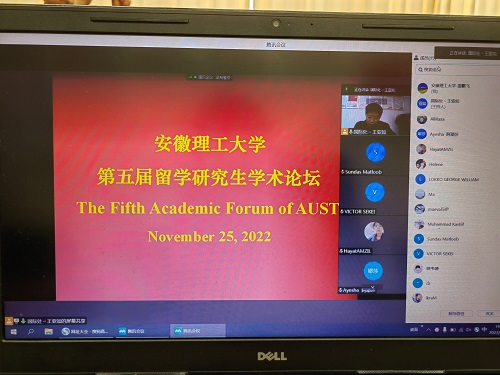 11月25日下午,安徽理工大学第五届留学研究生线上学术论坛在行政楼629会议室召开。副校长孟祥瑞教授出席论坛并致开幕词,国际学院负责人、相关工作人员、2019-2022级留学研究生参加了本次论坛。