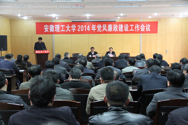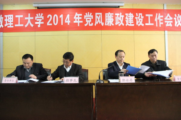 3月6日下午,学校在新图书馆西会议室召开2014年党风廉政建设工作会议,校领导颜事龙、郭永存、叶醒狮、王洪、刘泽功、王其东、周峰出席会议。会议由校长郭永存主持。