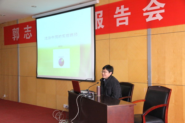 郭志远教授的报告分析了中国古代的法治思想、提出了“法治中国”的背景、论述了法治国家的要素,主要从坚持法治思维,注重发挥法治在国家治理和社会管理中的重要作用;依宪治国和依法行政等7个方面阐述了法治中国的实现路径。他的报告图文并茂,数据翔实,有理有据,为聆听报告的师生上了一堂精彩的法制课,对增强师生的宪法意识,培养法治观念,促进师生自觉学法、守法、用法等都具有很好的借鉴作用,受到与会师生的好评。