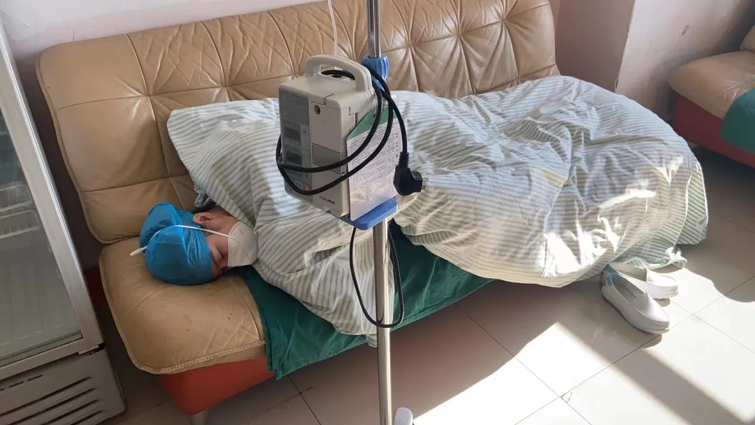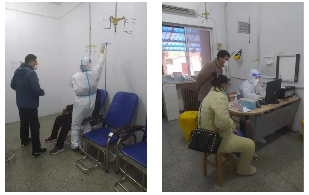 伴随着周边前来就诊的患者日益增多,医院西区医务人员也已连轴转多日,大部分医务人员也已不同程度感染,有的已经身体极度不适,仍然输着液上夜班、顶着高烧为患者处理,几位医务人员在家休息了半天便匆忙赶来医院为群众接种新冠疫苗,他们主动延长工作时间,竭尽所能帮助每一位有需要的患者。他们说,这是我们的职责所在,不能耽误每一位患者的治疗!