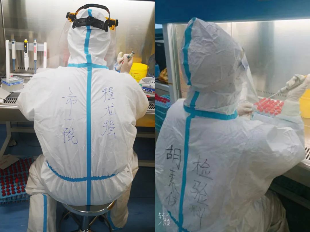 检验科承担着核酸样本检测的重任,在来势汹汹的病毒面前,广大群众也殷切希望能尽快看到自己的检测结果。在这种紧急时刻,检验科的每一位同志们均是“轻伤不下火线”,带病坚守。高烧难忍,想略微休息的请假在这个时候也已经成为了检验科同志们口中的“不情之请”。