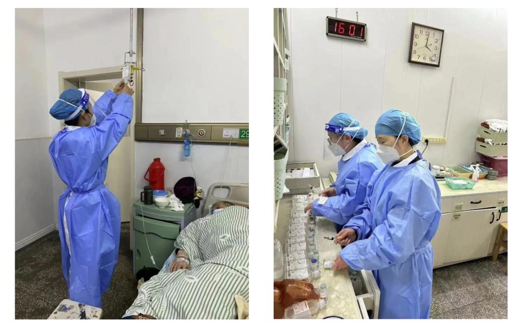 “没关系,大家多吃点苦,把这段时间熬过去就行!”面对如此严重的科室医务人员锐减的问题,科室里同事们一个个都站了出来。尽管他们自己身上有的还在不停咳嗽,有的还在发着高烧。但是面对科室的困难时期,作为科室的一员,他们都表示自己有责任有义务与科室一起共同面对这严峻的形势。虽然大家身上都或多或少带着病痛,但是面对着繁重的工作,大家的心态都是积极乐观的。同事们在一起互相帮忙互相照顾,亲如一家。虽然患者数量众多,但是他们决心不让我们的医疗护理质量下降一分一毫,持续给重症患者带来生命的希望!
