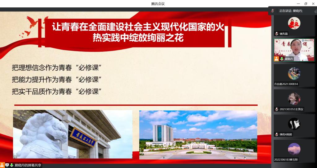 12月29日,由校团委主办,材料科学与工程学院承办的第九季青春思政课精彩开讲。本次课程以“走进二十大代表,感悟二十大精神”为主题,邀请到党的二十大代表、校第一附属医院日间医疗管理中心副主任、护士长夏晓丹为访谈嘉宾,全校800余名师生通过腾讯会议平台参加了活动。