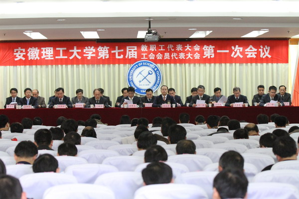 3月22日下午14:30,学校在校本部九楼报告厅隆重召开七届一次教代会和工代会第二次全体会议。校领导颜事龙、郭永存、叶醒狮、王洪、刘泽功、王其东、孟祥瑞、周峰及校七届一次教代会和工代会第二次全体会议执行主席在主席台就座。校党委书记颜事龙主持会议。