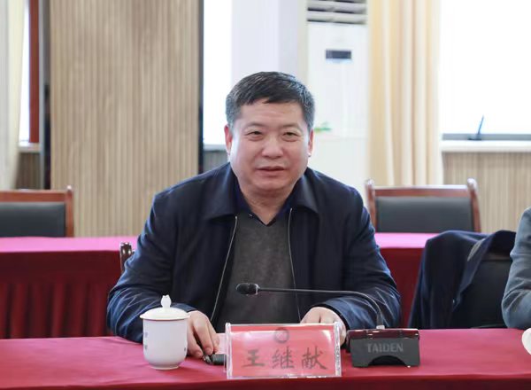 王继献对学校的热情接待表示感谢,对学校近年来取得的发展成就表示由衷钦佩,并介绍了中煤矿建集团的整体发展情况。他表示,学校长期以来为中煤矿建集团培养输送了大量优秀人才,有不少毕业生已经成长为公司重要骨干,为公司高质量发展提供了有力的人才保障和科技支撑。期待双方今后联系更密切,往来更频繁,合作更有力,融合更深入,实现校企同步发展,共同为美好安徽建设贡献力量。