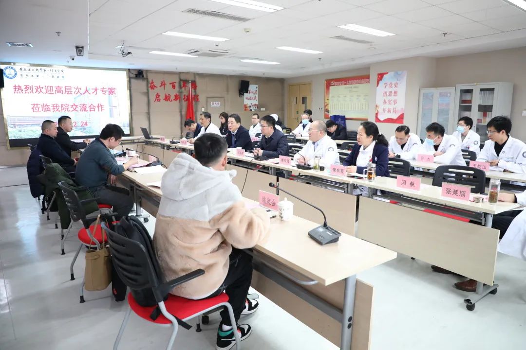 近日,复旦大学附属医院李明教授、医学院张思教授、姚定金博士;同济大学附属医院张国龙教授,上海九院杨雅骊教授、上海交通大学医学院马丽杰博士、上海研究院副院长周行,七位专家赴学校第一附院参加医院“快速融入‘长三角’高层次人才交流与合作接洽会”。一附院党委书记杨立新、执行院长刘新矿,副院长曾兆波、谢应海,院党委委员、高新区分院院长荣向霞出席会议。普外科、心血管内科、肿瘤内科、皮肤科四个临床科室负责人及部分职能科室负责人参会。谢应海主持会议。