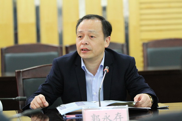 郭永存对来访领导表示热烈欢迎,他向客人介绍了学校的基本情况及学校省部共建事宜,特别指出申报国家重点实验室、开展产学研合作,对安徽省及淮南市经济社会发展有着特别意义。