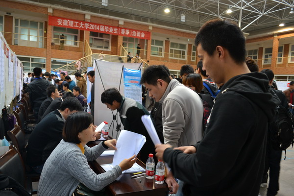 此次洽谈会需求专业涉及我校大多数本科和研究生专业,涵盖了煤炭、医药、化工、机械、汽车、建筑建材、IT、电子、材料、教育等众多行业。中煤科工集团平顶山选煤设计研究院、中铁大桥局集团第四工程有限公司、河南省前进化工科技集团、蚌埠液力机械有限公司、正大天晴药业集团、浙江省建工集团、雅化集团等企业和科研设计单位及合肥市、芜湖市鸠江区人才中心、新安人才网组织的企业均受到我校毕业生青睐。