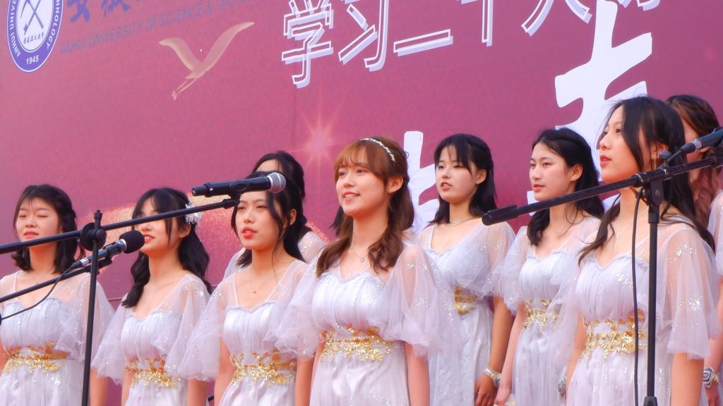 比赛以青春活力、励志昂扬的歌曲为总基调,各学院17支队伍携手登台,用青春最美好的声响唱出新时代安理青年深厚的爱党爱国情怀,《万疆》、《有我》等一首首具有时代气息的“新红歌”依次登场。医学院演唱的《紫荆花盛开》结合香港回归祖国26周年“同心创前路,掌握新机遇”的精神,诠释了当代青年对这座城市、对祖国的热爱和对未来的祝福;安全科学与工程学院演唱的《青春畅享》,将新时代青年人的朝气挥洒得淋漓尽致;经济与管理学院演唱的《万疆》通过极具艺术表现的四声部混声合唱,向大家展示了高水平的合唱技巧……歌会在计算机科学与工程学院表演的《向阳而生》中推向高潮,大家纷纷欢呼唱出心中蓬勃的梦想,放飞心中不灭的希望。在全场合唱中,歌会落下帷幕。