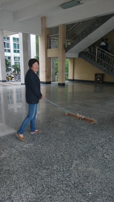 许志贤,回族人,自1996年来到安徽理工大学做保洁工作,至今已有近20年的工作经历了。每天不厌其烦地从9楼报告厅到新教楼,再到附楼做保洁工作,20年如一日。当问起许阿姨的家庭情况时,她淡淡地提及了些,她家住寿县那边的一个小村子里,发大水时给淹了;家中上有老下有小,4个老人都已80多岁了;她育有一男一女,女儿已经出嫁,儿子还在合肥上大学。家中更多的负担是由她承担的,她在这学校做着保洁工作的同时,还时常主动做些别的工作来贴补家用。