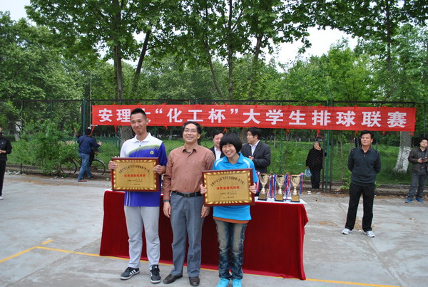 4月23日下午,安徽理工大学2014“化工杯”大学生排球联赛顺利落下帷幕。副校长刘泽功,化学工程学院院长何杰、体育部书记杨斌出席了颁奖仪式,并向本次比赛取得成绩的单位颁发了奖杯和证书。