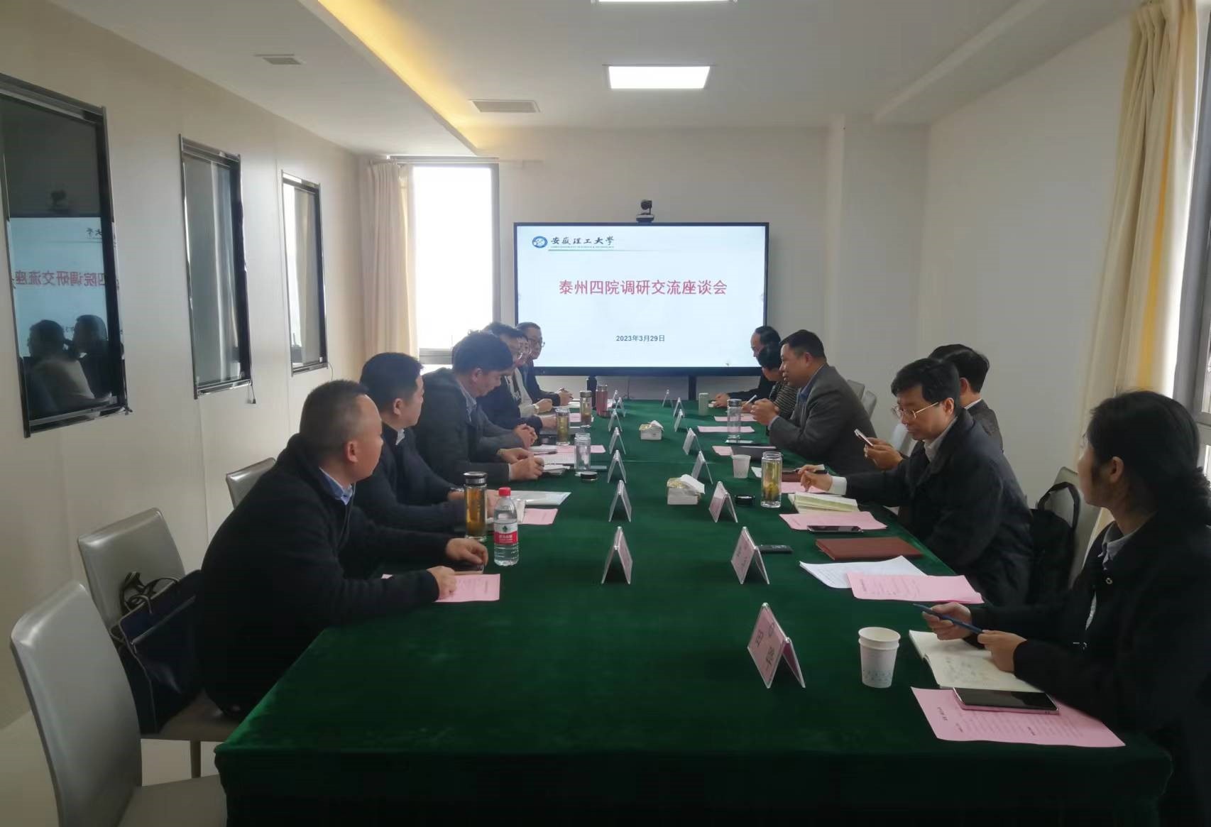 3月29日,泰州市第四人民医院院长刘桂荣会同泰州市海陵区卫生健康委员会党组书记、主任谭忠一行8人来校交流,商谈临床教学基地及GCP建设事宜,校党委常委、副校长、医学部主任鲁超出席会议并讲话。