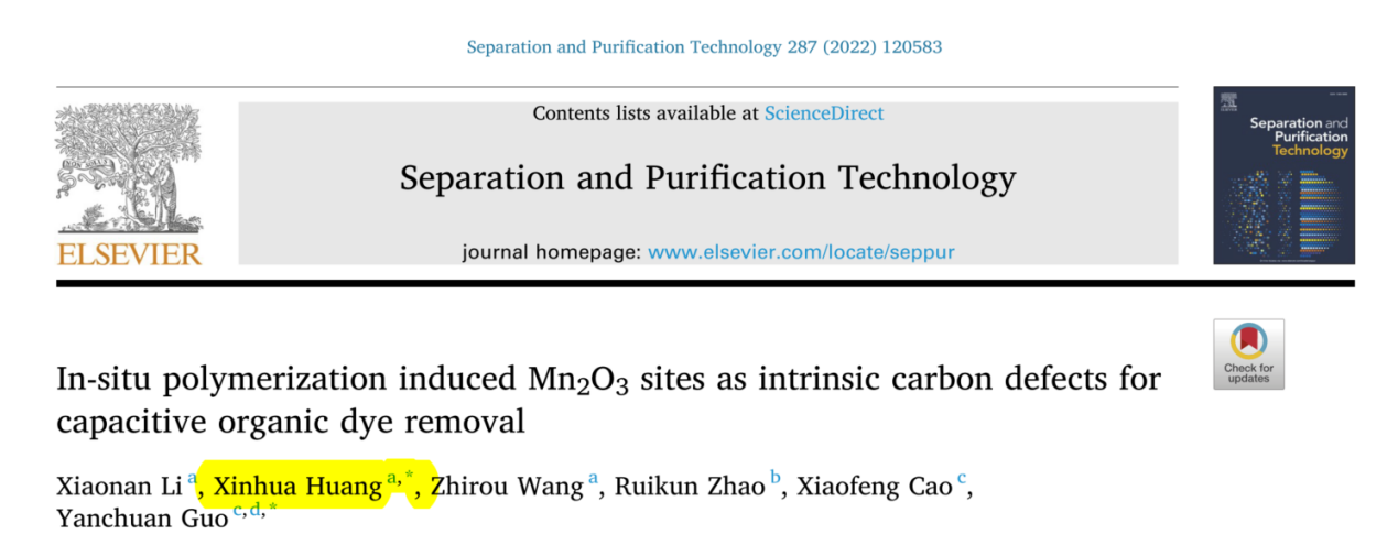 近日,我校材料科学与工程学院黄新华副教授在电容去离子研究领域取得进展,研究成果相继在Desalination (IF = 11.21)和Separation and Purification Technology (IF = 9.13)国际重要期刊连续报道。