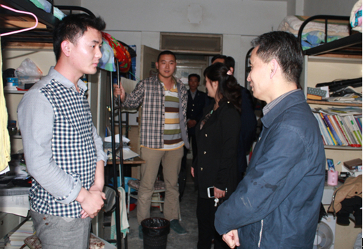 4月30日下午,校党委副书记王洪,来到我校君安高层公寓,检查了“五一”假期值班安排和安全防范工作,了解了学生假期离校、学习和毕业班学生就业等情况。
