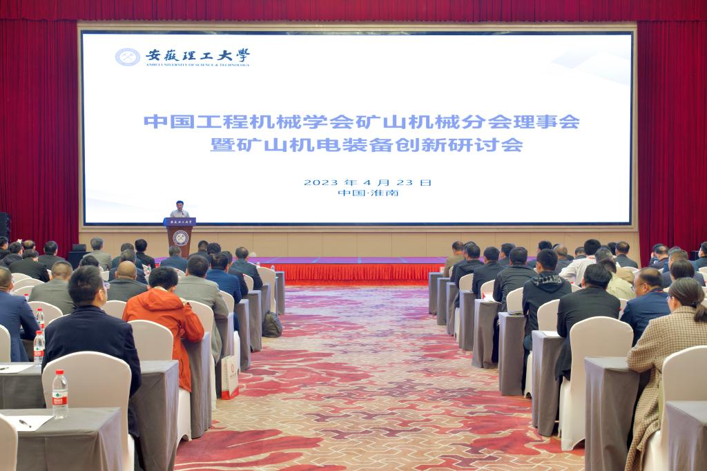 4月23日,由我校承办的中国工程机械学会矿山机械分会三届五次理事会暨矿山机电装备创新研讨会在淮南市迎宾馆安徽厅召开。来自全国各会员单位的理事和代表近200人参加了会议。学校党委书记郭永存出席会议并讲话。中国工程院院士王国法出席会议并作专题报告。会议由中国工程机械学会矿山机械分会三届五次理事会秘书长王忠宾主持。