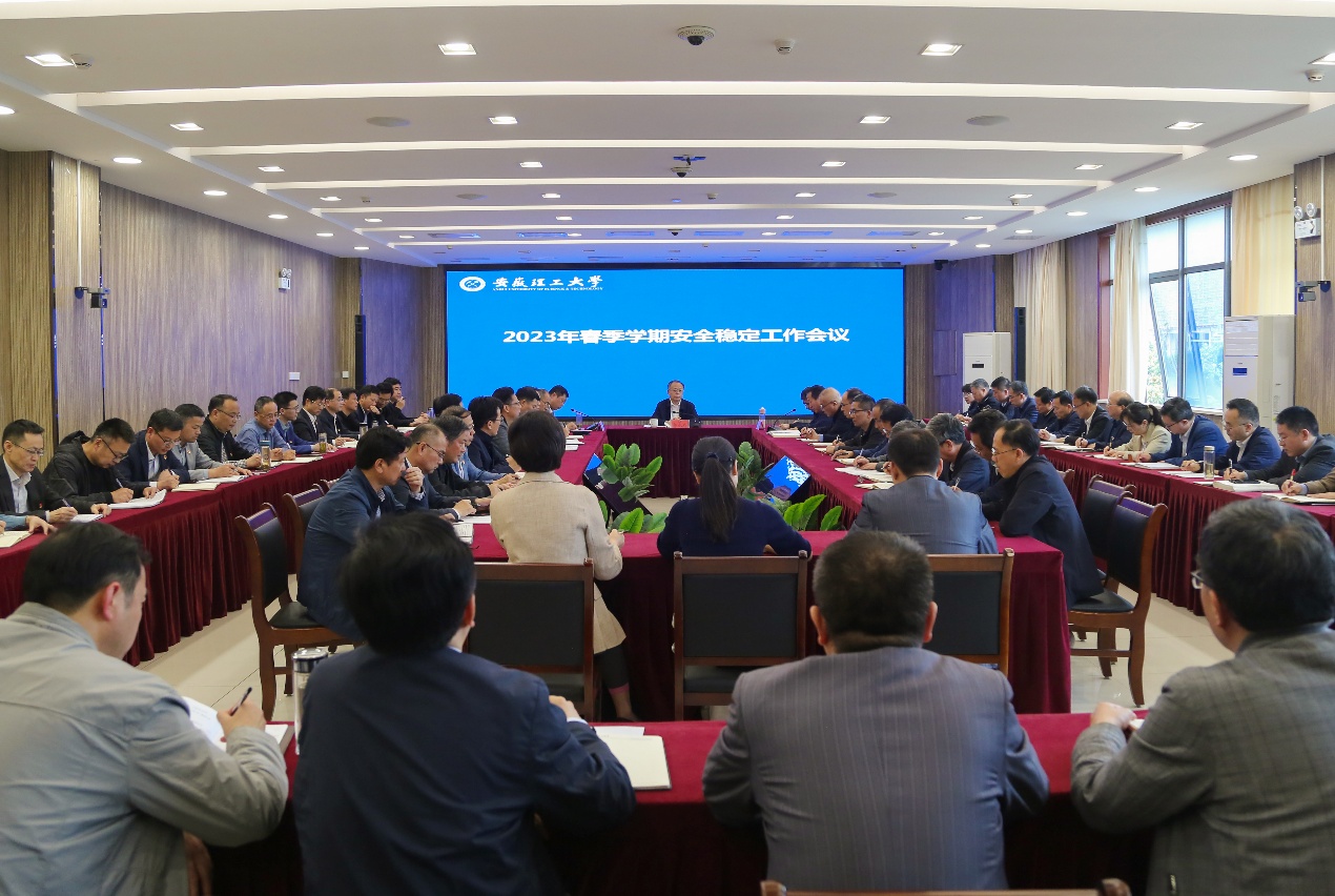 4月27日下午,学校2023年春学期安全稳定工作会议在舜耕苑二楼会议室召开。校党委书记郭永存出席会议并讲话。校党委常委、副校长董雨、鲁超出席会议。鲁超主持会议。