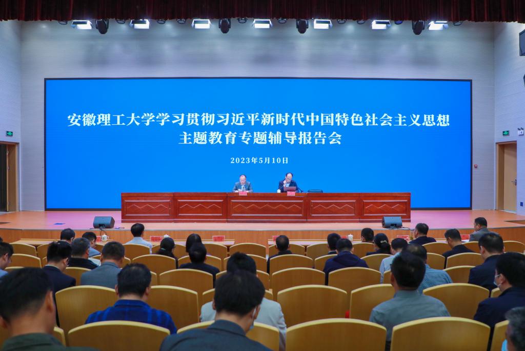 根据学校党委常委会学习贯彻习近平新时代中国特色社会主义思想主题教育读书班安排,5月10日上午,学校邀请安徽省人民政府政策研究室党组成员、副主任尹云松在舜耕会堂作辅导报告。报告会由校党委书记郭永存主持。校党委副书记、校长袁亮,校党委副书记、常务副校长余玉刚,副校长孟祥瑞,校党委常委、副校长宫能平、董雨、鲁超,校党委常委、纪委书记、监察专员王献余,校党委常委王先江、娄志勇出席报告会。