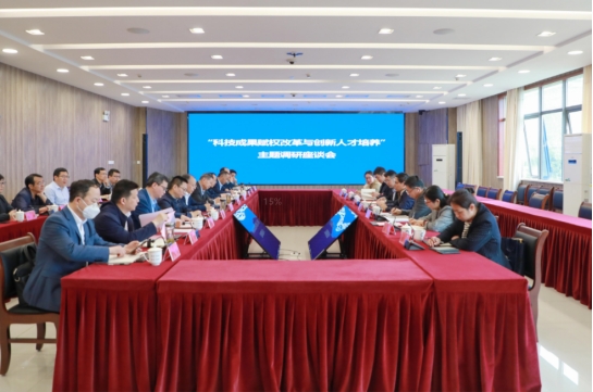 省科技厅成果转化与区域创新处、科技人才服务处、政策监督处负责人,淮南市科技局主要负责人,学校人事处、教务处、科研部、国有资产管理处、合肥高等研究院、大学科技园以及老中青科研人员代表参加座谈交流。