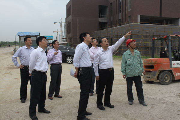 5月16日下午,省发展改革委重点办主任叶文卿一行到我校新校区工地实地调研。校长郭永存,淮南市发改委主任胡东辉、副主任尹伊,我校新校区指挥部曹光保、洪江如等陪同调研。