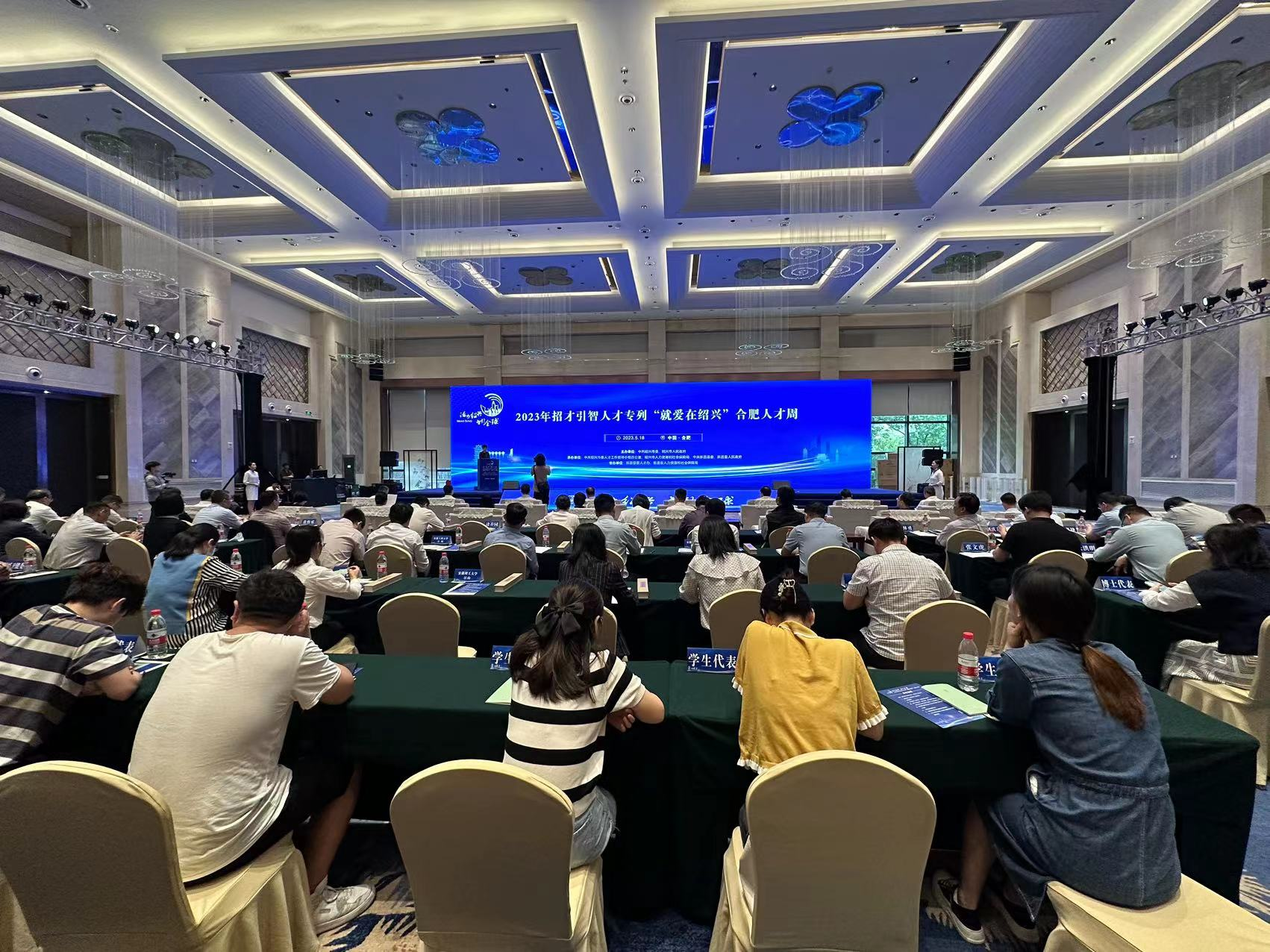 5月18日上午,2023年招才引智人才专列“就爱在绍兴”合肥人才周活动启动仪式在合肥翡翠湖迎宾馆开幕,来自中国科学技术大学、合肥工业大学、安徽大学等近20所省内高校领导、就业部门负责人以及100余名海内外硕博士和企业代表参加活动。校党委常委、副校长董雨应邀出席。
