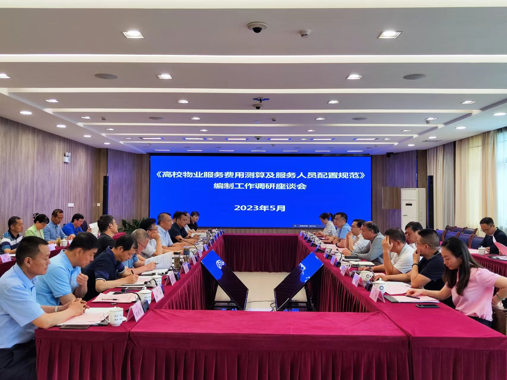 5月29日下午,中国教育后勤协会《高校物业服务费用测算及服务人员配置规范》编制工作调研座谈会在舜耕苑二楼会议室召开。校党委常委、副校长王先江出席会议并讲话,中国教育后勤协会副会长、物专会主任黎玖高通过线上参加会议,安徽省高等院校后勤协会秘书长陈鹏主持会议。《规范》编制工作组组长杨书元,《规范》编制工作组成员以及来自中国科学技术大学、合肥工业大学、安徽大学、安徽师范大学等11所省内高校的后勤负责同志和4个物业企业负责人共30余人参加会议。