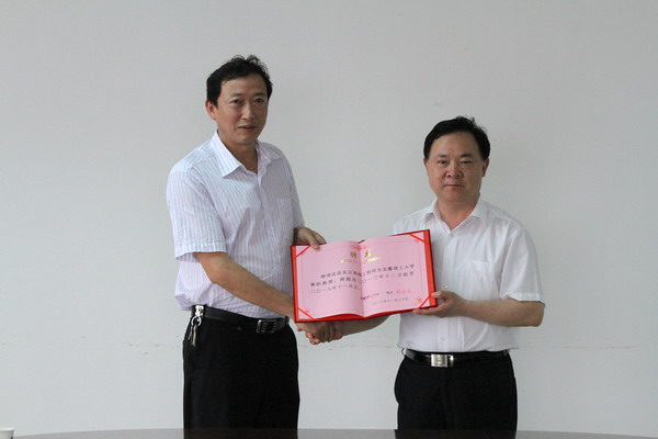 5月30日下午,学校在行政楼14楼会议室举行聘任仪式,聘请淮北矿业集团地质测量处副总工程师董祥林,安徽省测绘局基础测绘信息中心总工程师杨友长,淮南矿业集团资源环境管理部总工程师、副部长沈思良,皖北煤电集团公司总工程师办公室主任、技术中心主任陈玉平受聘为我校兼职教授。副校长刘泽功教授为受聘兼职教授颁发了聘书。