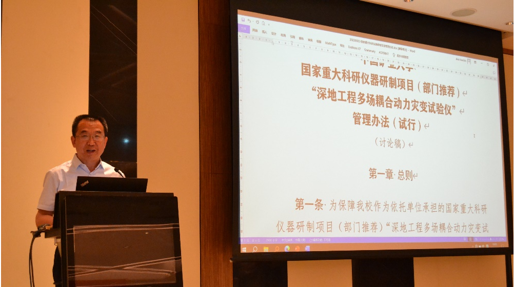 6月5日,由安徽理工大学党委副书记、校长袁亮院士主持的国家自然科学基金委员会国家重大科研仪器研制项目(部门推荐)——“深地工程多场耦合动力灾变试验仪”——内部启动会暨实施方案论证会在合肥顺利召开。项目依托单位中国矿业大学,参研单位山东大学、安徽理工大学、中国科学院声学研究所和中国地震局地质研究所的70余位研究骨干参加了本次会议,会议由袁亮院士主持。