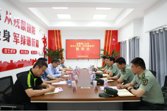 6月8日,淮南市委常委、淮南军分区司令员杨进一行就我校“两站两服务”平台建设开展检查验收,校党委常委、副校长董雨,党委武装部、党委学工部相关负责人等陪同验收并召开座谈会。