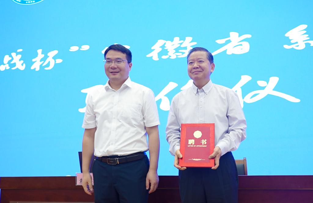 会前,陈明生为袁亮颁发“挑战杯”安徽省系列赛事顾问聘书。