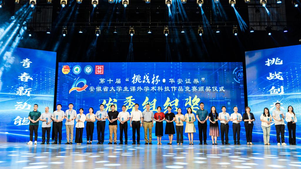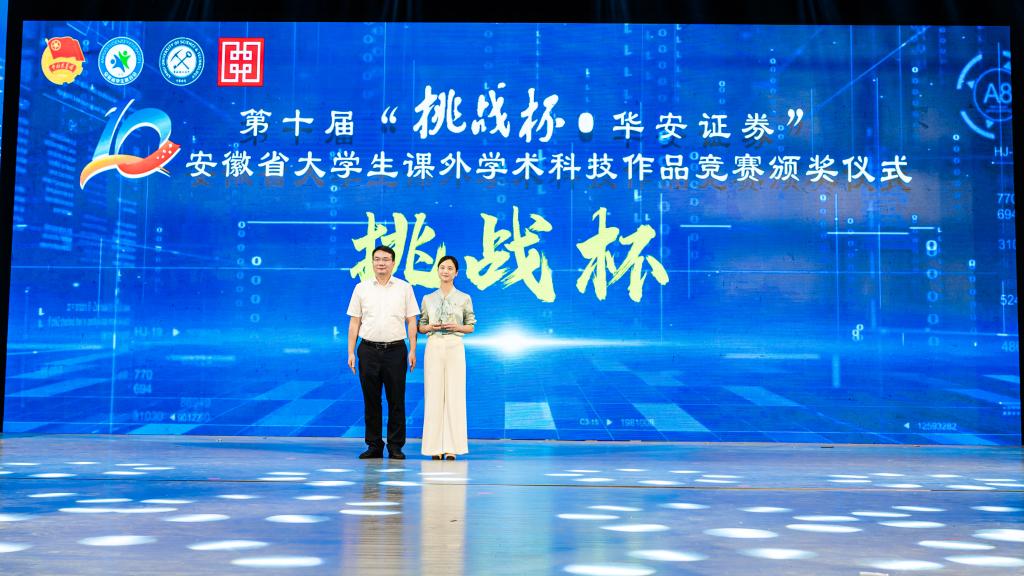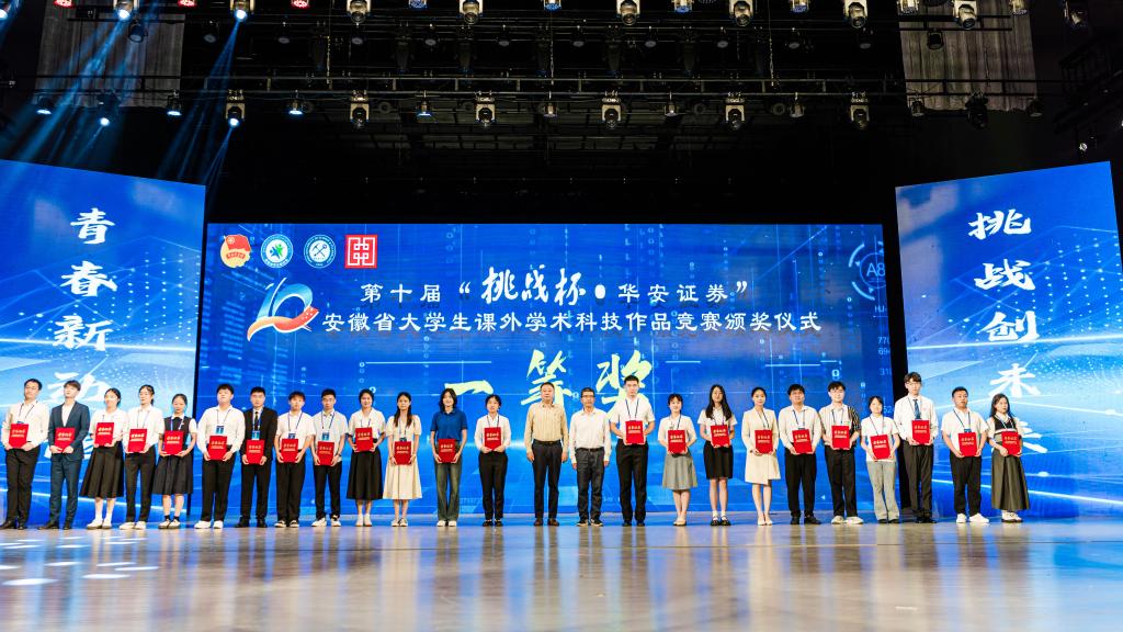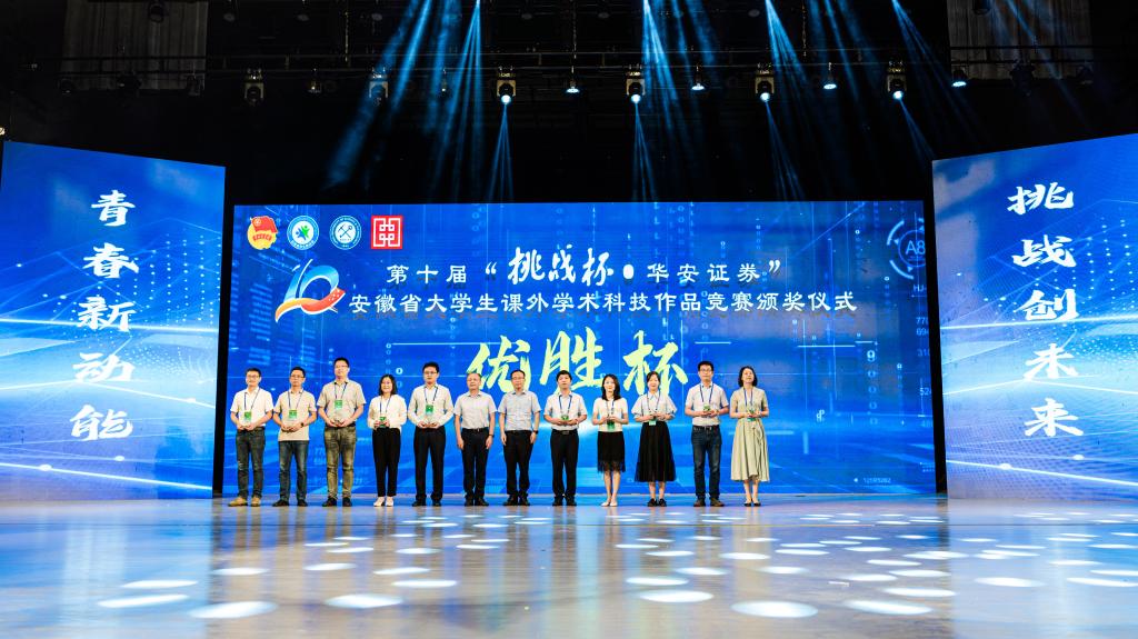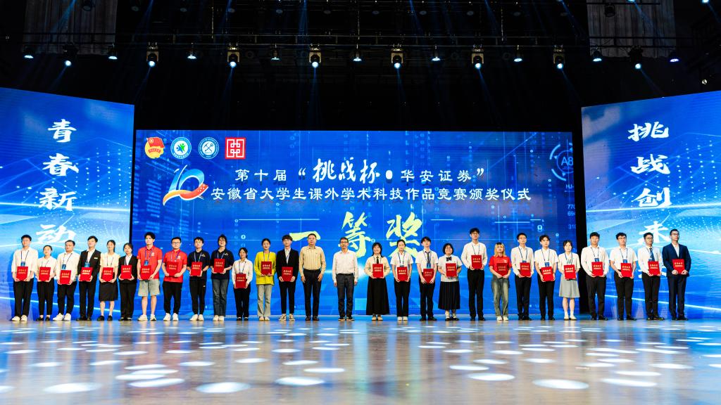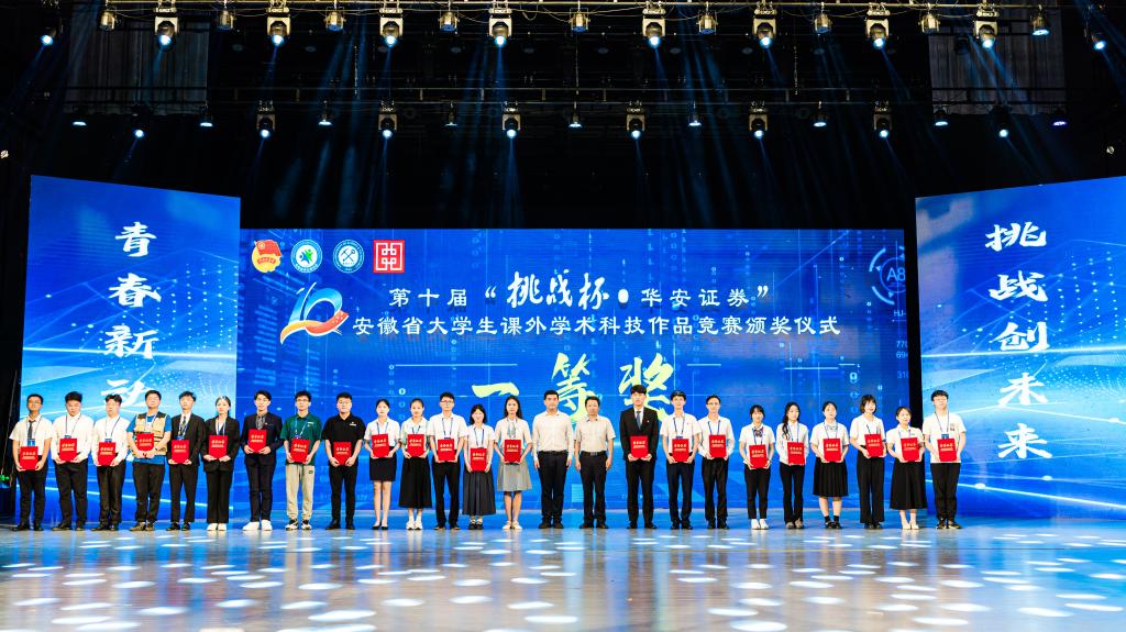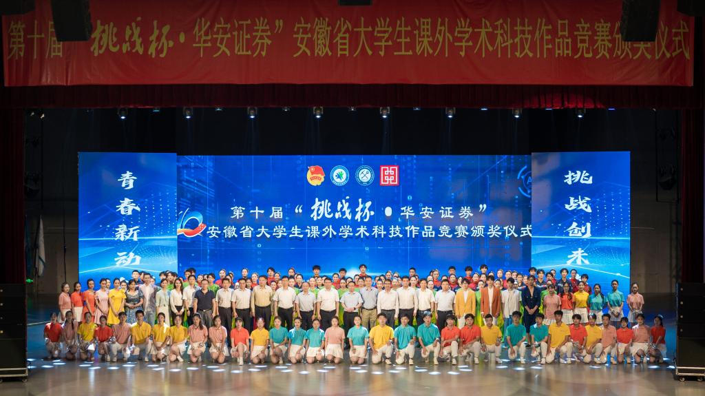 挑战青春,科创未来。6月11日下午,伴随着《青春畅享》歌舞将新时代青年的踔厉奋发与朝气蓬勃完美融合,第十届“挑战杯·华安证券”安徽省大学生课外学术科技作品竞赛闭幕式暨颁奖典礼拉开帷幕。本届“挑战杯”是由团省委、省教育厅、省科协、省社科院、省学联共同举办的一项具有导向性、示范性和权威性的全省大学生课外学术科技竞赛活动。