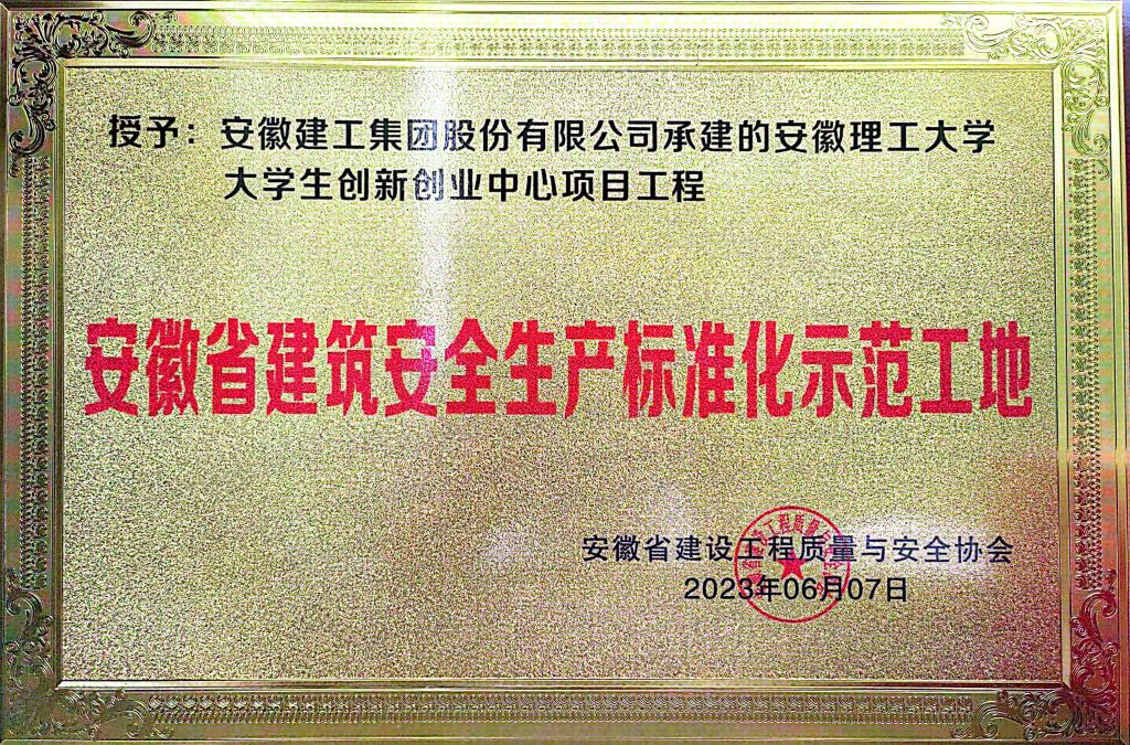近日,继研究生公寓3号楼项目、医教研协同与职业安全健康创新中心项目获奖后,大学生创新创业中心项目再次获评“安徽省建筑安全生产标准化示范工地”;陈峰获评“优秀项目负责人”。