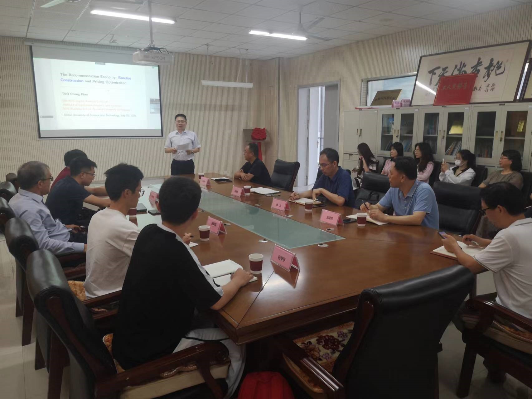 7月25日,应学校邀请,新加坡国立大学张俊标教授来学校交流,校党委副书记、常务副校长余玉刚亲切会见了张俊标教授。张俊标在经济与管理学院102会议室作了题为《航空业的推荐经济:套餐构建与价格优化》的学术报告。经济与管理学院负责人主持报告会,学院30余名教师和研究生参加了报告会。
