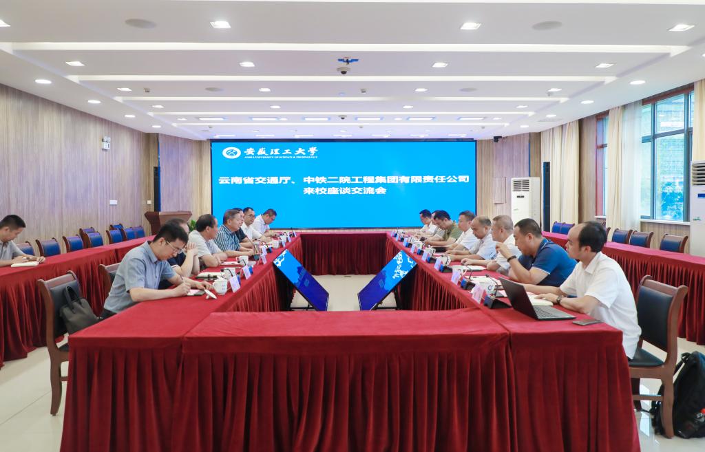 7月30日,云南省交通厅副厅长桂昆,中铁二院工程集团有限责任公司副总工程师杨昌宇等一行8人来校开展科研交流。交流会在西配楼二楼会议室举行,校党委副书记、校长袁亮院士出席并主持会议。