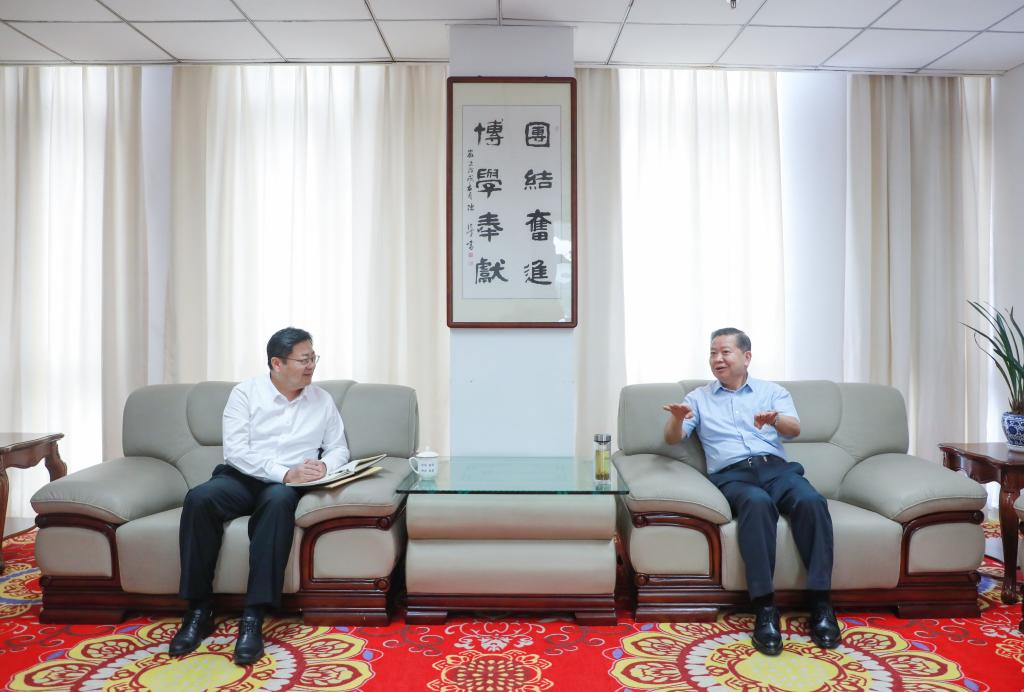近日,淮南市委统战部副部长、市工商联党组书记吴涛一行赴学校拜会校党委副书记、校长袁亮院士,双方就进一步深化政校企合作进行了交流。