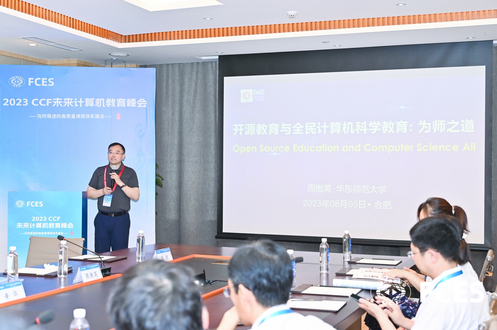 8月4日,由中国计算机学会(CCF)主办、安徽理工大学承办的第七届CCF未来计算机教育峰会(FCES 2023)在合肥隆重召开。为培养适应未来科技发展和行业需求的优秀人才,4日、5日下午,峰会围绕大会主题——“与时俱进的高质量课程体系建设”,从科技和行业发展、提高就业竞争力、适应行业发展需求、提高教育质量、推动学科交叉体系等多维度出发设置13个分论坛。分论坛邀请了来自清华大学、北京大学、浙江大学、上海交通大学、复旦大学、南京大学、中国科学技术大学、华中科技大学、西安交通大学、哈尔滨工业大学、北京航空航天大学、国防科技大学、北京理工大学、同济大学、中国人民大学、山东大学、西北工业大学、南京航空航天大学、西安电子科技大学、苏州大学等50所院校共90多位专家学者进行报告分享,共450余名学者参会。