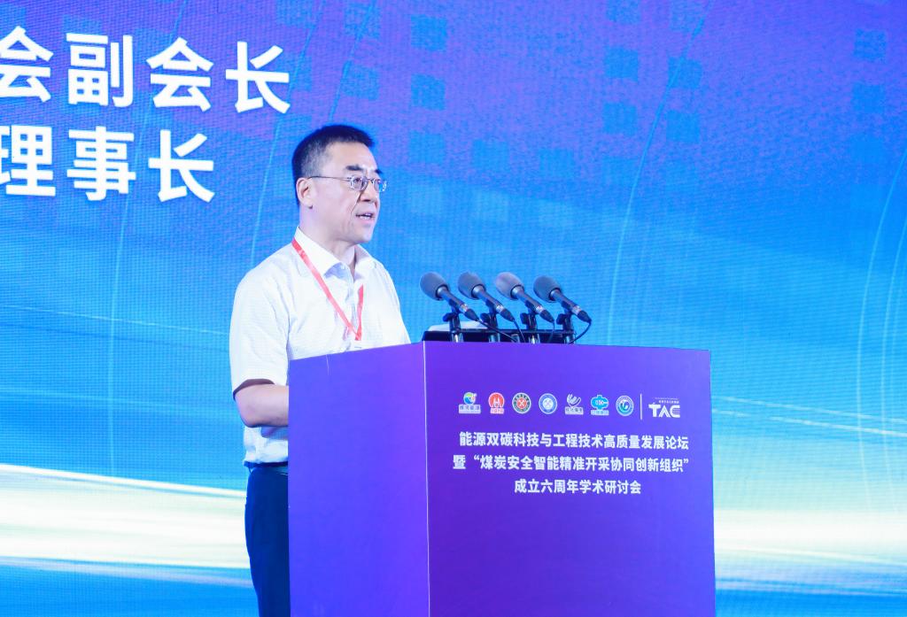 刘峰致辞。他代表中国煤炭学会、中国煤炭工业协会及本次学术论坛的组委会,对论坛的顺利举行表示衷心祝贺。他指出,六年来,“煤炭安全智能精准开采协同创新组织”搭建了能源科技学术交流合作的高端智库平台,通过将物联网、大数据、云计算、人工智能等先进技术与煤炭开采相融合,积极探索煤炭智能感知与控制技术的创新应用,取得的一系列重大研究成果为煤炭的安全智能绿色开采提供了有力支撑,推动了“煤炭安全智能精准开采”从科学构想发展成为理论和技术现实,为提升煤炭安全、高效、低碳的开采水平贡献力量。他希望大家以“协同创新组织”学术研讨会为契机,更加紧密携手合作,不断探索能源双碳科技领域的新理论、新技术、新成果、新经验,为推动我国能源科技进步贡献智慧和力量。