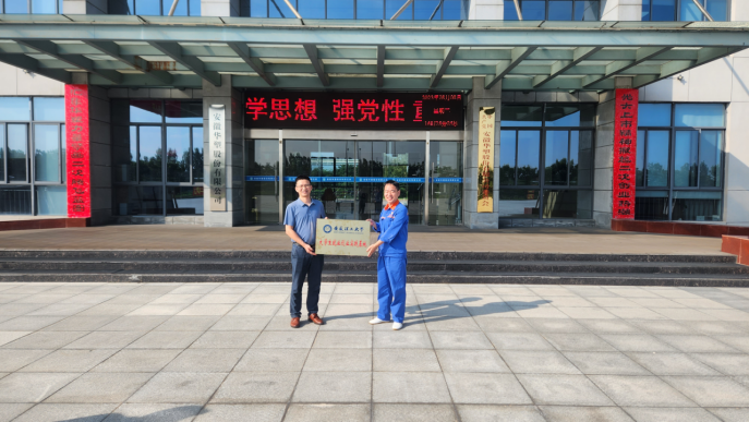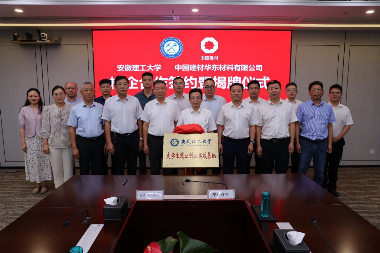 座谈会后,宫能平与公司负责人共同为“安徽理工大学就业创业实践基地”揭牌。